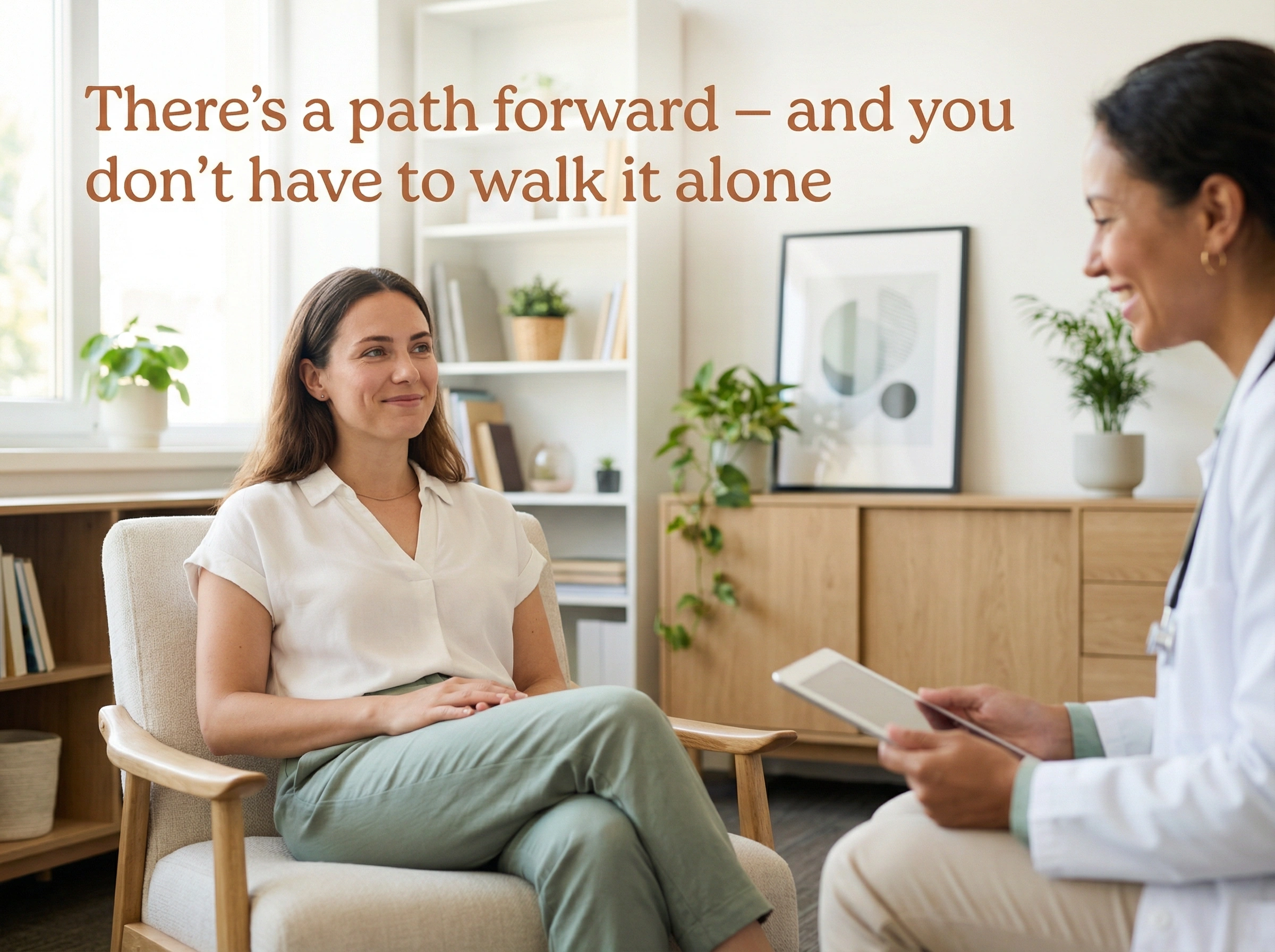 Our team provides compassionate, individualized care that helps you understand your symptoms and find relief that lasts. You don’t have to keep pushing through. You deserve care that helps you feel calm, grounded, and truly at ease—even when life is good.